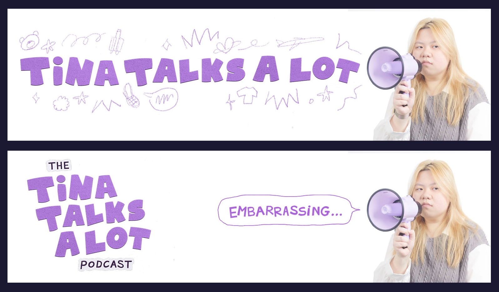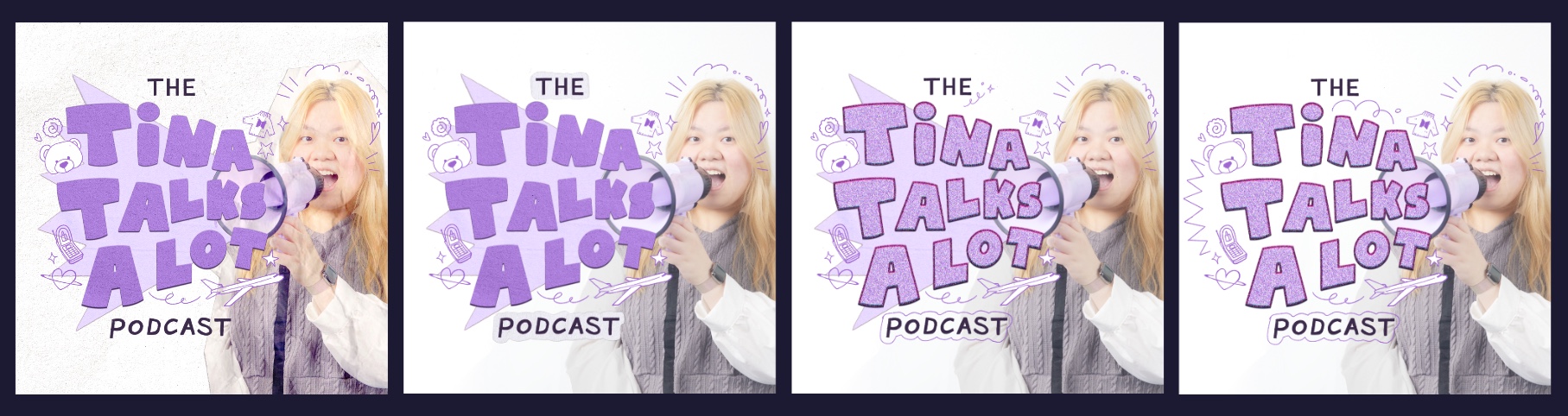 Her upcoming podcast, much like her Youtube channel, is going to feature more of her personality and unique insight, so it was crucial that the design of the logo, cover, and banner communicated this. Through various iterations and close communication, I was able to create a cohesive, on-brand set of visuals and successfully translate the concept and style she had in mind. As a longtime viewer (and now friend!) it was an absolute delight to be able to work with Tina and contribute to her growing channel.